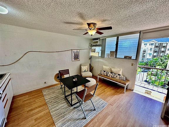 Welcome to Kaioo Terrace, conveniently located in Waikiki. This top-floor one-bedroom, one-bath condo with one unassigned parking stall offers bright, breezy living. The unit includes an air conditioner, plus ceiling fans in both rooms and steady tradewinds. Built in 1970, Kaioo Terrace retains the charm of a classic Hawaiiana building while offering amenities such as a pool and hot tub, secured entry, a trash chute, and convenient laundry on each floor. The location is one of the most walkable in Honolulu—minutes from Ala Moana Shopping Center, Waikiki Beach, groceries, and bus lines. Pets are allowed (verify). Monthly fees include water, sewer, gas, electricity, and trash. This is a leasehold property with the ground lease expiring 12/31/2033. The fee interest is not currently available, and the property must be purchased with cash. Short-term rentals are NOT PERMITTED; buyers should verify a minimum six-month rental term with the AOAO. This home offers an affordable way to enjoy the Waikiki lifestyle, combining convenience, comfort, and value in one of Honolulu’s most desirable neighborhoods.