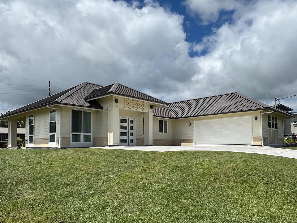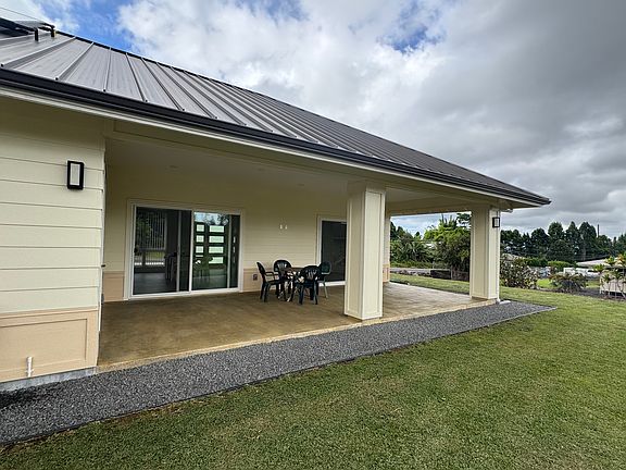 Newly completed home. 3 bedrooms, 2 baths with enclosed garage. Designed to accommodate wheelchair accessibility, with wide doors, ADA thresholds, roll in shower and handicap grab bars. Vaulted ceilings with cove lighting. Large covered patio at rear. Fully insulated walls with insulated glass windows provides very cool house with no need for AC. Very peaceful and friendly Kaumana neighborhood, very walkable and located at higher elevation for cooler temperatures. All vinyl plank and ceramic tile flooring for easy maintenance. All quartz countertops, with soft closing cabinet doors. Spacious master bedroom with large walk in closet. Owner prefers tenant with long term rental needs. Why build a new home when you can rent a new one for long term! Excellent retirement opportunity especially for aging in place. Please text for more information or to set appointment.