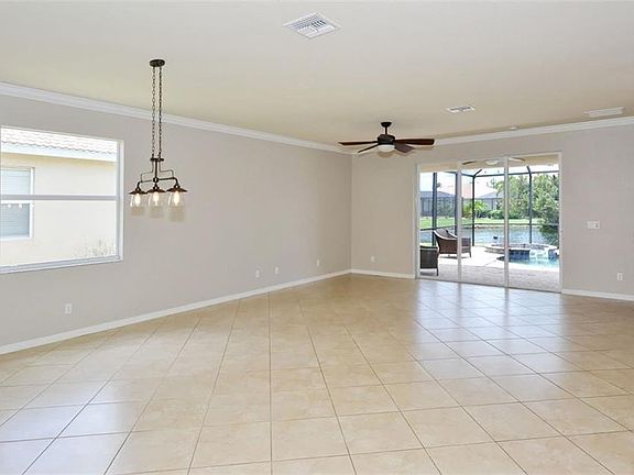 Ready to move in, freshly painted interior, 4 bedroom 3 bathroom home in Stoneybrook at Venice. Upon entering, you are welcomed with views of the pool area and lake through the open floorplan. Stonybrook at Venice offers a fitness center, community swimming pool, sa, tennis courts, nature trail, skating ink, Pickleball, shuffleboard, basketball, beach volleyball, and play ground.