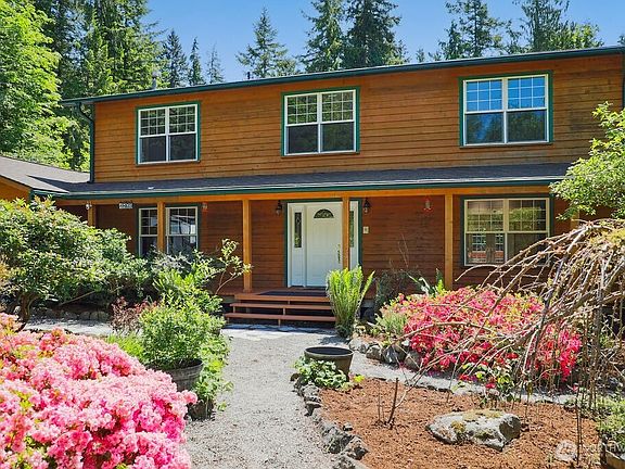 Big Country home w/ 3300+ sq ft! Nestled behind lush ferns & towering cedars gives this home a great NW feel! Sit on your covered wrap around porch & enjoy your own private pond that provides a haven & sanctuary for wildlife. Inside has been freshly painted & has new carpet. Large kitchen w/ corian counters, pass through window, a den for your home office or crafts, flex room w/ potential for MIL or guest suite. French doors lead to an ample deck w/h hot tub overlooking a firepit & play set. Large master suite w/ balcony. Stay cool on warm days with A/C. Newer roof. Generator. Oversized garage w/ shop area ideal for tools/hobbies. RV & toy parking. Rare find w/ space, privacy, & versatility! North Kitsap Schools. Close to Bangor & Keyport.