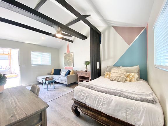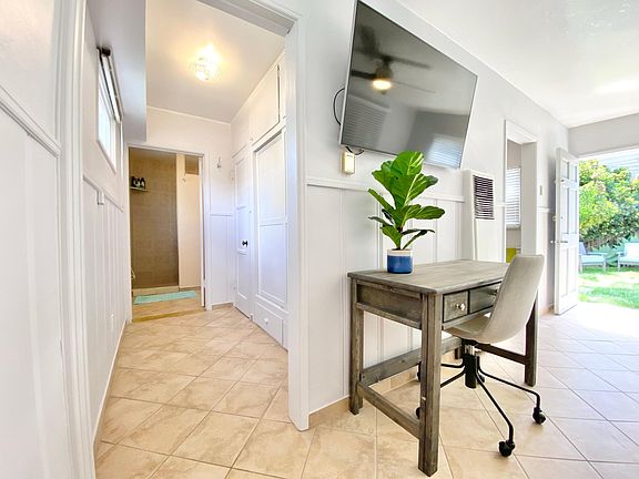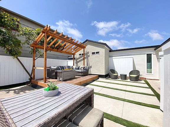 Comes with a beautiful huge tropical yard with orange and lemon tree and tons of tropical plants! There is also lounge furniture and fire pit and hanging Italy lights for a nice night time ambiance!