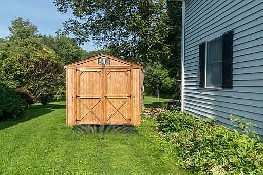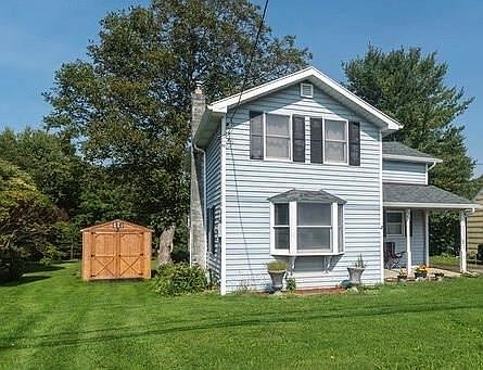 Who needs a 3 bedroom colonial with 1 full bath up and 1 half bath down A HUGE party deck A BEAUTIFUL LARGE BACK YARD Who wants a home with NEWER COVERED GUTTERS- A NEWER ROOF- A NEWER FORCED AIR FURNACE- A NEW WATER HEATER - NEWER 3/4 INCH PEX PLUMBING WHO NEEDS TWO SHEDS WHO WANTS TO HEAT WITH A BACK UP WOODSTOVE YOU DO! Come see all this home has to offer! An updated kitchen- a breakfast bar- can lighting, a comfortable covered front porch to enjoy your days on and close to everything yet still in the country!
