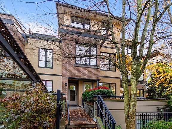 Nicely Maintained Townhouse in Prestigious UBC! Welcome to this popular 3-level home featuring 2 bedrooms upstairs and 1 on the main floor. Newly painted with high-quality engineered laminate flooring throughout. The bright, open layout offers spacious living and dining areas, a modern kitchen with granite countertops, stainless steel appliances, and a brand-new dishwasher, plus a convenient powder room on the main. Enjoy a sunny northwest-facing patio with open views. Upstairs, two generous ensuite bedrooms feature access to two private terraces showcasing stunning North Shore mountain views.Additional highlights include over-height ceilings,elegant master ensuite,2 parkings &1 storage locker.Located in the heart of UBC steps to the Bus Loop,shopping,Pacific Spirit Park.O/H Nov 8/9 2-4PM