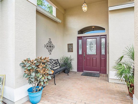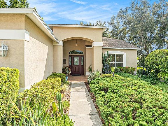 Beautiful Heritage Pines! Welcome to this thoughtfully designed residence in the heart of the sought-after Heritage Pines community. Featuring a split floor plan that provides privacy for guests, this home also boasts a fully enclosed, covered Florida room, extending your living space and offering the perfect spot to relax or entertain year-round. With 1,878 sq. ft. of comfortable living space, this spacious home offers 3 bedrooms and 2 bathrooms, providing plenty of room to host friends and family. The oversized, soundproof-insulated garage offers ample space for your golf cart—perfect for an evening ride to the clubhouse for dinner or a sunset cruise through the community. Step outside to enjoy a beautifully landscaped backyard, ideal for morning coffee, afternoon relaxation, or evening wine under the stars. Residents of Heritage Pines enjoy resort-style amenities, including an 18-hole championship golf course, full-service restaurant, grand clubhouse, heated community pool, pickleball and tennis courts, fitness center, and a vibrant calendar of social activities. Perfectly located along County Line Road, Heritage Pines is just minutes from US-19, top dining, shopping, and medical facilities—offering both convenience and comfort. Experience the best of Florida living at Heritage Pines!