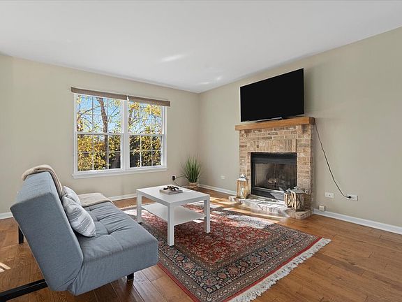 Amazing, rare opportunity to own a townhome in "The Court Homes of Oakwood" by Cambridge Homes located in Woodland & Warren School District!!! Beautiful Rich Hardwood flooring throughout most of the home with wood stairs and railings. Thoughtfully laid out floor plan with Spacious Living room, dining room, 2 bedrooms, loft area, 2.5 baths with a partial English Basement featuring cozy family room and 2-car garage. Modern eat-in kitchen featuring light cabinets, granite countertops, extended breakfast bar island, pantry, recessed lighting and sliding glass doors to huge balcony. Modern updated powder room off the living room. Primary bedroom boosts vaulted ceilings with ensuite, laundry conveniently located on second floor, second bedroom and bath next to huge loft area with vaulted ceiling. Partial English basement area features ample natural lighting - great for a third bedroom, office, or exercise room. NEW Windows throughout!!! Easily accessible to all shopping, restaurants, parks and major roadways in Grayslake and Gurnee. This Rare Beauty won't last long!!!