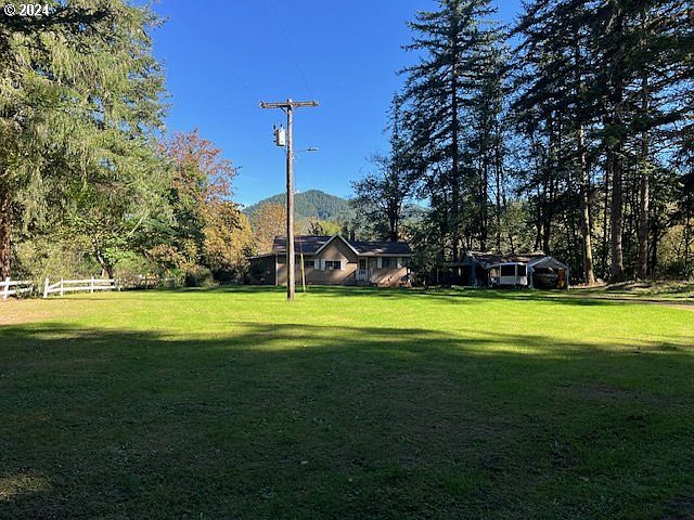 This remarkable 21-acre property is situated just 5 minutes from Triangle Lake. It boasts creek frontage, two ponds, and a spacious 76 x 80 shop! The property was previously fenced for cattle and horses. The land features mature timber and expansive pasture areas, with the entire property adjoining Weyerhaeuser land that leads to BLM forest land. The residence is a charming three-bedroom, two-bathroom home, offering an updated kitchen and 1,056 square feet of living space, enhanced by exceptional privacy and the soothing sounds of the creek from the back deck. This one of a kind property has endless potential.