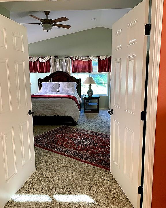 Eco Friendly home with transferable title solar power, tankless water heater for low energy bills, This home shows great, 3 bedrooms, plus a den area. updated kitchen with Granite counters, Livingroom with fireplace and wet bar, Familyroom has French doors to Livingroom, Formal Dining room, newer Patio Slider, newer Solid wood front door, updated bathrooms with tile, granite, and marble, indoor laundryroom, balcony from upper bedroom, newer vinyl fencing, newer exterior paint, shows light and bright, Plantation Shuttters downstairs. 2 car garage.
