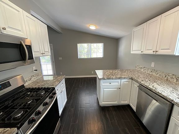 Welcome home. This gorgeous remodeled home features a newer kitchen with granite counters, stainless steel appliances, and newer tiled baths. The open living area offers 4 bedrooms with a large master suite, generous closet space, and direct access 2 car garage with a laundry area. Small front yard and private rear yard with patio area.