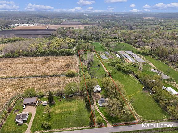 Calling all hobby farmers and equestrians! Peace and serenity surround you on this 5 acres of land, where you have the best of both worlds: privacy with its many trees on the edge of the property, and flat paddocks that have been fenced for your animals. This home features many updates including a new roof (2019), new furnace and ac (2021), new flooring (2022) and newer appliances. The main floor includes the primary bedroom, large updated kitchen and dining space, office, along with a living room that opens to a large deck. Upstairs you'll find another bedroom and flex space, which has always been used as the third bedroom. There is a large 38x40 barn and a large shed with electricity which has been used as a chicken coop. All of this near Byron Center city center and all it has to offer