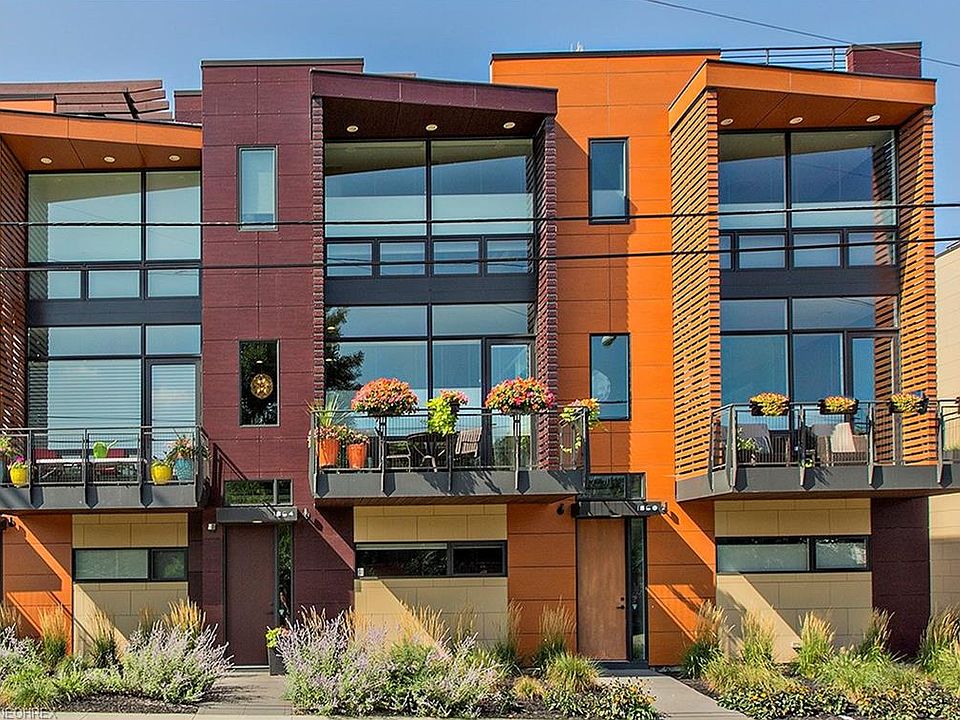Located in the highly sought after 27 Coltman, this edgy townhome is outfitted w/ high end, custom finishes & is tax abated through 2026! The entryway features modern tile & a bonus room, perfect for a home office/gym. The main floor offers tons of natural light & strand woven bamboo floors. The kitchen is outfitted for a chef! Upgraded cabinets, an oversized island, quartz counters, custom glass backsplash, & professional grade appliances including a 48", dual fuel, 6-burner range w/ griddle & hood, counter depth fridge, built in microwave, dishwasher, & beverage center - you'll be ready for any dinner party! Your living room has a remote controlled gas fireplace w/ built in cabinets & opens up onto a balcony. Your 3rd floor features the secondary bedrooms & bath, laundry space, & owner's suite, which offers a stunning bath w/ dual vanities, heated tile floor, custom tiled walk in shower w/ Euro-style glass shower enclosure, & an enlarged closet w/ cherry melamine custom built ins. The 4th floor was upgraded to include additional living space, as well as storage for your spacious rooftop terrace! Hot & cold water supply, as well as gas line for grilling. Hunter Douglas shades throughout w/ blackout version in master. Control4 Smarthome Automation. Residential Home Security System. Too many features to name! Inquire for complete list of custom finishes. Minutes from University Circle, Case Western, Cleveland Clinic, museums, cultural centers, Little Italy, & more!