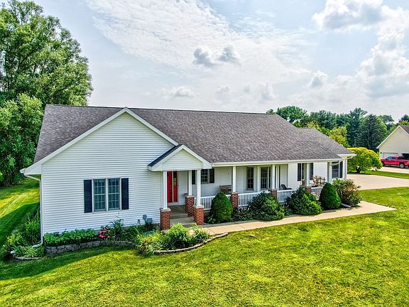Custom designed and quality built by Halm Construction 1 owner home located north of Ottawa in popular Wallace Grade School district. This Ranch style 1 story home has 3-4 bedrooms and 2-3 baths with a very Open floor plan. Features include a wraparound and covered front porch. Hardwood foyer, large Kitchen with custom Cabinetry from Woodhill cabinetry, center island, tile back splash, appliances included. 1st floor laundry. Great room with hardwood flooring and gas fireplace with wood deck off of it with gazebo. Master Suite has new carpet and private master bath with new tile flooring and double vanity, Jacuzzi tub and walk-in closet. The lower level features a large Rec room with rough in for a bar, 4th bedroom or work out room with walk in closet and additional bath perfect for guest bedroom. Solid oak wood work and 6 panel oak doors.