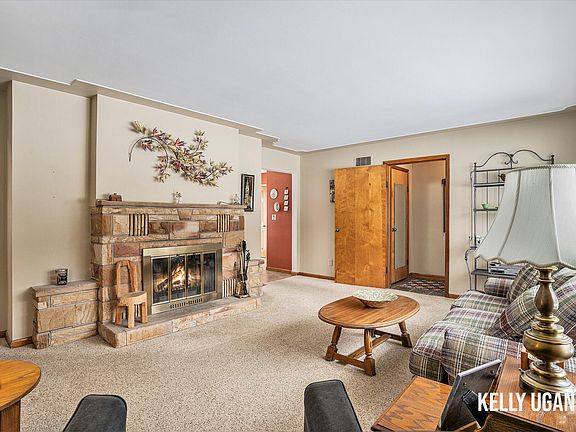 Offer in hand. Seller is taking Highest and Best by Thursday at 5 and making a decision on Friday. Well maintained ranch style home in Fruitport School district has a desirable extra heated garage located in the fully fenced backyard that is equipped with electricity and water. Eat in kitchen offers lots of cabinet storage, solid surface countertops, tumbled tile backsplash along with sliders going to the deck. Vintage charm in the sand stone wood burning fireplace in the living room and continues to the finished rec room in basement that features knotty pine paneling in excellent condition with built-in hutch, fold down iron board cabinet and a bar or craft cabinet.