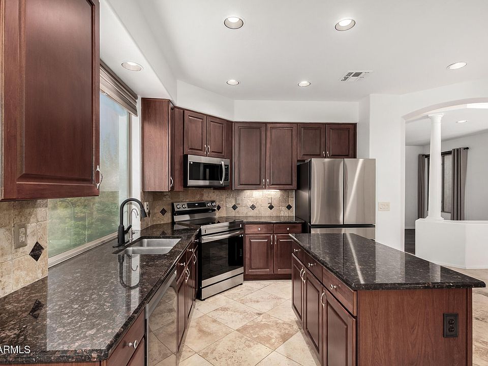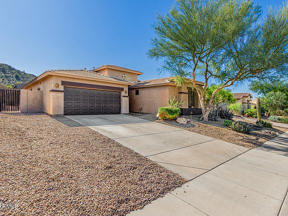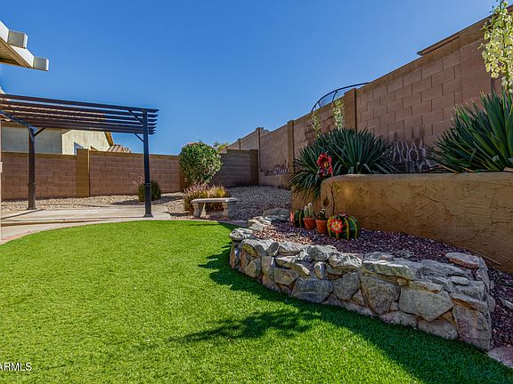 Located in the coveted Estrella Mountain Ranch community, this spacious home is a must-see! Recently painted on the inside, this home is light, bright and open. The kitchen has updated appliances, granite countertops, newer RO system, pantry and many cabinets for storage. The family room extends off the kitchen and has a cozy fireplace with views to the backyard. The massive primary bedroom is split from the guest bedrooms and its on-suite includes double sinks, walk-in closet and extra storage for linens. One of the guest bedrooms could be used as an office with a built-in desk and bookshelves. The backyard is a peaceful retreat with extended covered patio and pergola perfectly set for a private spa (pre-wired).Situated close to both lakes, stores & restaurants makes this a one-of-a-kind home. Community amenities include miles of hiking/biking paths, 2 community clubhouses with fitness and pools, golf course, 2 lakes, tennis and pickleball courts, multiple parks, and much more!!