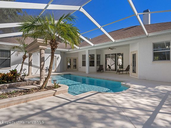 New roof being installed prior to closing! Exterior freshly painted in 2023! This stunning 4-bedroom plus flex-room pool home sits on approximately 1.5 acres in the beautiful, sought-after community of Autumn Oaks—one of the most popular neighborhoods in the area. From the moment you arrive, the curb appeal impresses with Tens of 1000s of dollars invested in custom brick pavers for the drive and walkways, surrounded by professional landscaping designed for Florida living. Inside, the living room features a striking stone fireplace and elegant inlaid tile design, creating a warm and inviting space to relax or entertain. The spacious kitchen is truly the heart of the home, with oak wood cabinetry, granite countertops, and sparkling newer stainless-steel appliances—perfect for large meal prep or casual gatherings. The primary suite offers a peaceful retreat with its own electric fireplace, a luxurious garden bath with soaking tub, dual vanities, and two generous walk-in closets. Three additional bedrooms on the opposite side of the home provide privacy and ample space, with one featuring access to a large storage room and outdoor entry. Step outside to enjoy your impressive 45x27 screened pool area overlooking a lush, private backyard—ideal for morning coffee, outdoor dining, or evening nightcaps under the canopy. This special custom home was built for comfortable Florida living and is ready for you to fully enjoy!