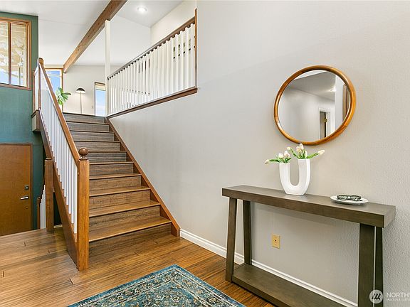 Breathtaking Puget Sound & Olympic Mountain views set the stage for this beautifully reimagined Normandy Park retreat. Privately nestled down a quiet drive, this 3+BR home offers 2,240 sq ft of warm, inviting spaces—including expansive living, dining, and family rooms with bamboo floors, designed for gathering and celebration. Thoughtfully updated in the past 3 years with new windows, luxe bathroom upgrades, and a divine kitchen remodel. The lower-level rec room with attached bath offers potential for a 4th bedroom or guest suite. Enjoy a sunny, fully fenced hot tub ready 12,000 sq ft yard, new roof, fresh exterior paint, and detached shed with power—ideal for studio, office, or future DADU. A true gem close to parks, trails and shopping.
