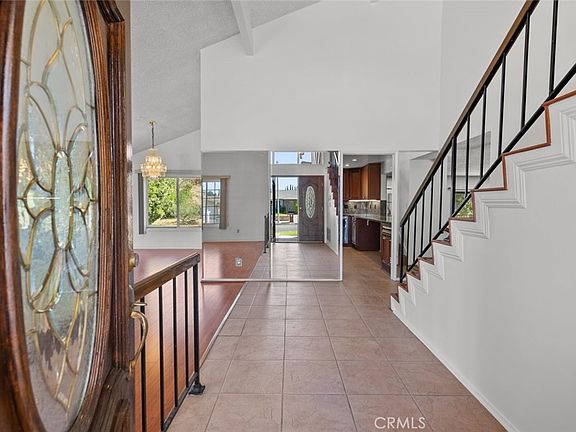 Presenting a stunning two-story home nestled in the highly sought-after neighborhood of Porter Ranch. This exquisite property boasts 4 bedrooms, 3 bathrooms, and a flawless floorplan spanning 2,279 square feet of living space. As you step inside, you'll be greeted by a grand vaulted ceiling, accentuating the formal living and dining rooms adorned with wall-to-wall mirrors, creating an illusion of even more spaciousness. The home features a generously sized family room with a wall-to-wall built-in, a cozy fireplace, and a convenient sliding door providing seamless access to the delightful patio. A chef's dream, the kitchen is equipped with built-in stainless-steel appliances, elegant granite countertops, and beautiful wood cabinets. Illuminated by recessed lighting, the kitchen also boasts a lovely bay window overlooking a picturesque view. The bedrooms are bright and inviting, with the primary bedroom offering double the closet space and a private ensuite bathroom complete with a double sink vanity. All three bathrooms feature granite vanities, providing ample storage space. Make your way outside to the spacious backyard, your own private oasis, perfect for entertaining and relaxation. The open patio invites you to add your preferred seating, while lush greenery and mature trees create a tranquil atmosphere that's perfect for spending quality time with company. Adding to the allure of this home are the bountiful fruit trees, including lemons, oranges, figs, and pomegranates, adorning the backyard. A convenient laundry room with built-in cabinets ensures a clutter-free living space. Notably, the flooring, kitchen, and bathrooms were upgraded just two years ago, showcasing a modern and elegant design. The exterior of the property has been recently painted, further enhancing its charming curb appeal. Additionally, the property boasts a wide driveway and an attached 3-car garage for utmost convenience. Enjoy the perks of an ideal location, close to the Wilbur Tampa trailhead, Viking Park, and the Porter Ranch Country Club. With easy access to the 118 Freeways, this home offers both serenity and convenience in one perfect package.