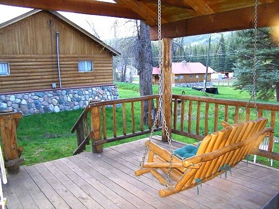 Covered deckLog exteriorReal wood-burning fireplaceNotty pine interior