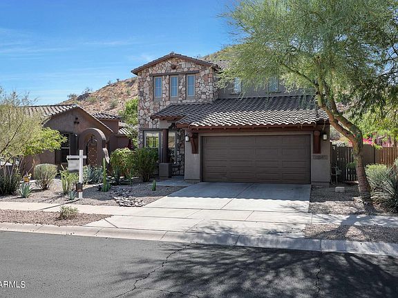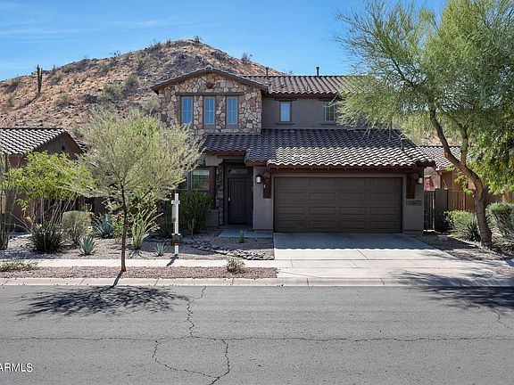 Great location in Estrella Mountain Ranch, backs up to the mountains for breathtaking views from every room in the back of the house. Walk up to this freshly painted 2 story home. When entering you see vaulted ceilings, bonus room and dining area. Beautiful luxury vinyl plank flooring throughout most of the home. On the main floor you will also find a bedroom, full bath, great room open to the kitchen, featuring stainless steel appliances, island, breakfast nook and door to the backyard that is great for entertaining or relaxing in the above ground hot tub while enjoying the views. The upstairs offers the main bedroom & ensuite with soaking tub, double sinks, large walk in closet and mountain views. You also have the laundry room, loft, two bedrooms and another full bathroom on the 2nd floor. Finishing off with a 3 car tandem garage.