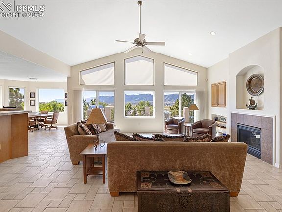This one owner, custom home sits on 1.52 acres, with unobstructed, exceptional views of the front range, Pikes Peak, USAFA, & Lake Woodmoor from every room & window. Sellers have meticulously maintained the exterior & interior. Walk through the front door & you are greeted by the breathtaking views! The gourmet kit features Dbl ovens, Dacor oversized gas stove, sub-zero refrig., bar/vegetable sink, trash compact. solid maple cabs, glass doors, open shelving, rope lights above the cabinets, duel height bar, toe kick vac. system, W/I pantry, instant hot water & great room concept! The main level primary bed is impressive w/ its size, bay window for reading chairs, Make-up vanity w/ drawers & lights, gas log fireplace w/ custom tile surround & arch display niche above, & walk out to the deck. Enjoy your private SPA bathroom w/ massive W/I closet, water closet w/ bidet, raised soaking tub & custom tile walk in shower w/ bench seating! The main level family room features vaulted ceilings, a gas fireplace w/ lighted art niche, built in cabinets & walks out to the new 2019 built composite deck w/ iron rail. Round out the main level w/ a large laundry rm w/ sink, kit nook & formal dining. The well planned w/o basement starts w/ 9' ceilings & all windows are above ground to let those amazing views in. Every room is extremely large to include the 3 bedrooms! There is an additional full bathroom for the guest or kids. Don' miss the office/hobby room or exercise room. The open family room walks out to the covered patio looking at the views of the lake. Other high end features: Electric lift (elevator) in garage holds up to 550 lbs, Newer Pella windows in 2017, Radiant heated floors on both levels, 9' ceilings in basement, 80 gal water heater w/ heat exchanger system, 16'x33' storage, concrete tile roof "fire safe", natural gas line on deck for grill, whole house sound/intercom system, central vac system, 2 whole house attic fans, owned security system, washer & dryer included.