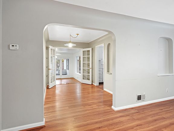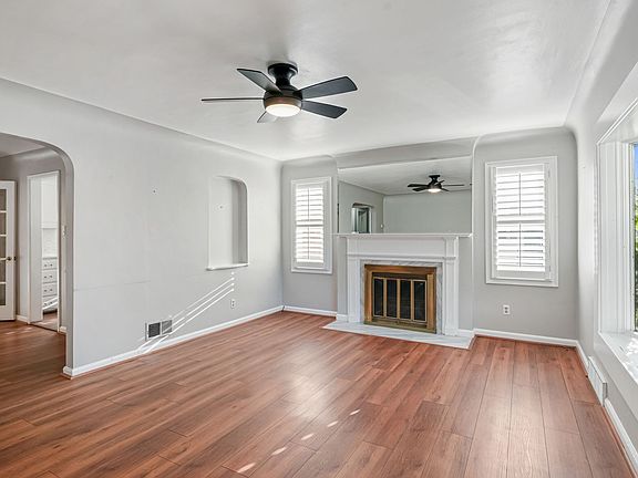Private backyardArched entryOversized two-car garageWhite picket vinyl fenceClay tile roofUpdated kitchenMarble-surround fireplace