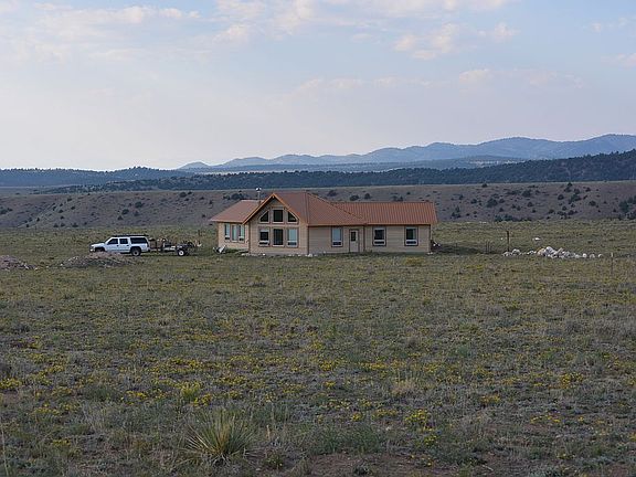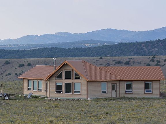 For sale by owner. As-is sale. No owner finance. For more info, after reading full description, CONTACT BY EMAIL: copperridge.westcliffe@gmail.com. Do not call cell phone at this time. This off-grid ICF (Insulated Concrete Form) home is quiet mountain living at its finest. With copper penny steel roof and nearly foot thick walls, it is a prepper's dream. Concrete radiant floor heating, as well as wood stove and south facing windows for solar gain provide heating redundancy. Large Milgard windows provide natural light throughout the home and highlight majestic mountain views from every room. Huge hexagon open floor plan for living and dining area centered around a beautiful 17’ Englewood pine post. 36 acre square lot that gently slopes for excellent drainage and pasture. Lot is situated on a high mountain prairie between the stunning Sangre de Cristo mountains and the rolling Wet Mountains. Exterior is sided with corrugated metal and fiber cement board (James Hardie Board) for excellent fire suppression. House is partially bermed on the north side providing insulative value. Landscaping around the perimeter of the house is minimal creating a second level of fire suppression. Property has its own domestic well and septic system. 15 minutes to downtown Westcliffe. Space between lots affords maximum views and privacy. HOA is $100 annually. Located in Centennial Ranch within close range of BLM access. Dark skies community with excellent night views and photography. 6 miles from a very small local airport. A huge opportunity: This home is unfinished and can be completed as a 2 or 3 bedroom home. Current configuration is for a larger guest bedroom/bunkroom. Buyers can finish to whatever level suits their needs and budget. House needs: drywall, plumbing, electrical, ceiling insulation, well pump, cabinetry. Well tested in 2017 with very good water flow (paper work provide to serious buyers). Post Covid family obligations require us to sell as-is. Serious inquiries may contact us at copperridge.westcliffe@gmail.com