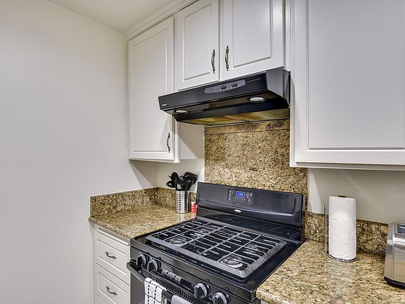 Galley kitchen with gas burners (serious heat), ample cabinets, and updated appliances opens to a defined dining space and living room that still feel airy.