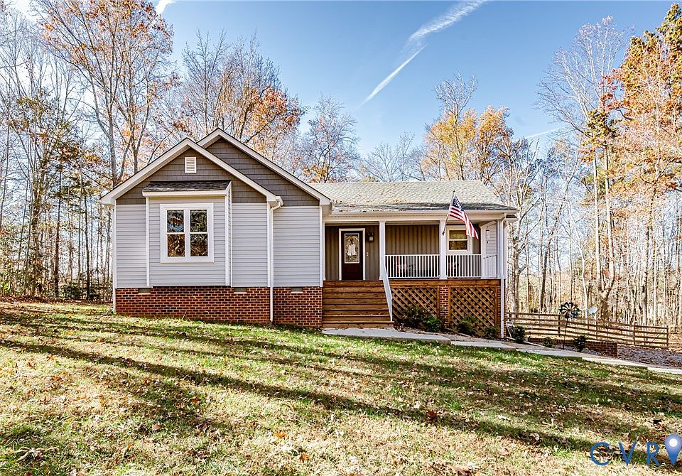 Welcome to this charming Ranch in Powhatan County. Offering 3 Bedrooms with 2 Full Baths and a Full Unfinished Basement situated on 5 Private ACRES! Upon entering the freshly painted home you are greeted at an open foyer that transitions into the Large Great Room with Hardwood Floors throughout, Gas Fireplace, Vaulted Ceilings and plenty of natural light. The kitchen flows nicely off of the Great Room with Granite Countertops, Center Island, Spacious Dining area, Pantry, Craftsman style wainscoting, Stainless Steel Appliances and access to Rear Deck. The Primary Bedroom is privately situated in the rear of the home with Carpet, Walk-In Closet and an Attached Main Bath with stand-alone shower, sunken tub, dual vanity. Bedrooms 2 and 3 offer ample space and large closets. The Basement can be finished to 2 additional rooms and has a roughed in full bath and access into the garage. Enjoy the privacy on the back deck looking out at the beautiful sunsets every evening or all the wildlife this area holds or relaxing on the full covered front porch. This home is located in the heart of Powhatan County and only minutes from Dining, Shopping, Entertainment, County Park, 288 and 64. All of this on a quiet one street cul-de-sac neighborhood! You don't want to miss this one!