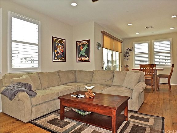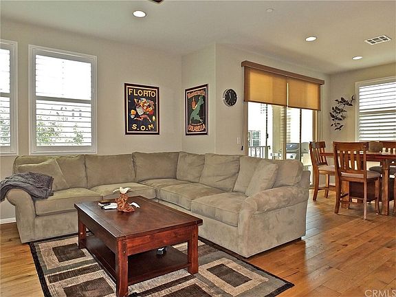 Lovely Beautifully Designed newer townhome with two car attached garage direct access into your home. Solar , Tankless water-heater, efficient home, A/C, motion sensor lighting , ceiling/light fans throughout. End unit, perfect location, mixture of sunlight and space, you will enjoy the modern amenities. Large balcony off the dining room, open kitchen with large granite counter, large pantry, each bedroom has it's own bathroom plus an additional half bath downstairs for guest and coat closet, ample storage and closet space. Many upgrades, Arte Blanco tile & Martini Time carpet , window coverings stay, over $20,000 of improvements & upgrades instead of the "builder's standard" ~ Community has heated spa, fireplace, club-house, showers , perfect for the summer and entertaining. Summertime and the living is easy. Ideal Location. Master bedroom also features balcony to enjoy the So.Cal summer nights.