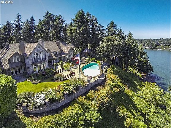 One of Oregons Most Exclusive Lake Oswego Waterfront Estates,Mt Hood and Sunset views, swimming pool 1.39 acres over 200 ft lakefont stellar boat house/cabana, Hand salvaged ancient European timbers accent and frame a striking stone traditional in and out. Stately yet tremendous livability pervades this beautiful home. Upper and lower master suites, custom library, grand entry, 6 firplcs, kitchen/great rm with beamed vaults