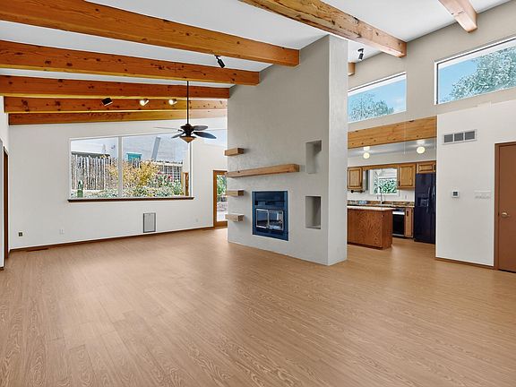 A SMART BUY! You are going to love this beautifully updated Sandia Heights patio home full of tasteful upgrades and timeless charm! This light-filled home features a large living room with soaring beamed ceilings and a cozy two-way fireplace, a luxurious primary suite, and a dining room with a huge picture window and abundant natural light. Recent updates include a newer TPO roof, HVAC system, dual-pane windows, countertops, fresh paint throughout, and brand-new carpet. The home is professionally xeriscaped front and back, with a tranquil fountain and stream creating a peaceful outdoor retreat. Other features include built in bookshelves and display case, a sunroom (not in sqft), covered patio, and easy access to hiking and biking in the beautiful Sandia foothills. WELCOME HOME!!!