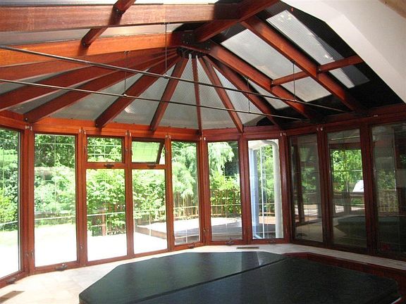 Renovated thru/out, Custom Gourmet kitchen w/d Burning/Gas Stove, Stainless Appliances, Cath Ceiling, Brick FP & Custom Cab in LR. Sunlit Octagonal Din Rm opens to Entertainment sized Deck, Front to Back Family/Solarium Room w/ Hot tub, Sauna. Hardwood Floors, Italian Tile. Master Suite w/1.5 baths, Separate WC. Dressing Room/ Sitting Room w/ Outdoor Balcony overlooks the Landscaped yard. Private In Law/ Au Pair/ Teen Suite w/ 2 Full baths, Kitchenette, Beautiful Park like Grounds w/ Fruit Trees