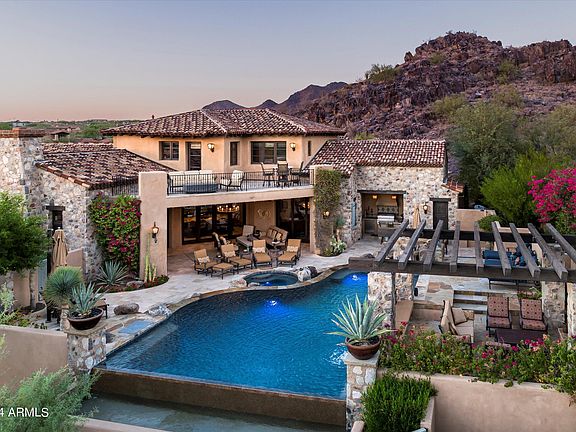 SILVERLEAF CLUB MEMBERSHIP TRANSFER AVAILABLE. Refined elegance with a melody of eclectic Southwest aesthetic, this Silverleaf Casita was a CUSTOM creation of architect Jeff Berkus and is ideally situated on two homesites backing to a craig maximizes the Sonoran surrounding views. Using a mix of materials and influences brings a fresh twist to Southwest style. With attention to detail in design, this home offers functional living spaces with 5 bedrooms, 6 baths including a private entry guest house, and an upstairs bunkroom/den with expansive patio overlooking pool and outdoor living, plus executive office, theatre room, and hobby room.