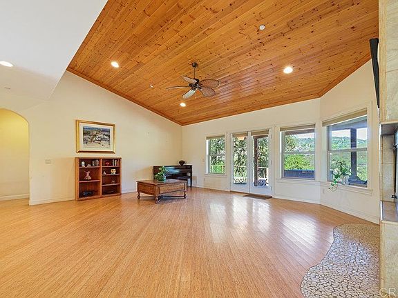 Escape the city and settle into your own private retreat in Jamul’s beautiful Deerhorn Valley, where wide-open skies, mountain views, and peaceful living define every day. This custom home, built in 2010, combines modern comfort with natural surroundings, offering an open floor plan, soaring wood ceilings, and walls of windows that bring the outdoors in. The main residence features a large open kitchen with granite counters, stainless steel appliances, and a large island designed for entertaining. In addition to the other two bedrooms, the primary suite features a gas fireplace and opens to high vaulted ceilings. The spa-style bathroom is equipped with dual sinks, a private sauna, oversized soaking tub, and a walk-in shower. Step outside and you’ll find an entertainer’s dream. Expansive patio space with pizza oven, endless-swim spa, and fireplace. A separate casita studio with its own access and parking is ideal for guests, extended family, or rental income. With a horse corral already in place, flat usable land, and a fully owned solar system for true energy independence, this property is ready for both comfort and creativity. The landscaping is a blank canvas, giving you the freedom to design your dream setting—whether that’s lush gardens, a private vineyard, expansive outdoor living spaces, or a resort-style backyard built for entertaining. This is more than a home, it’s a lifestyle in one of East County’s most desirable neighborhoods.
