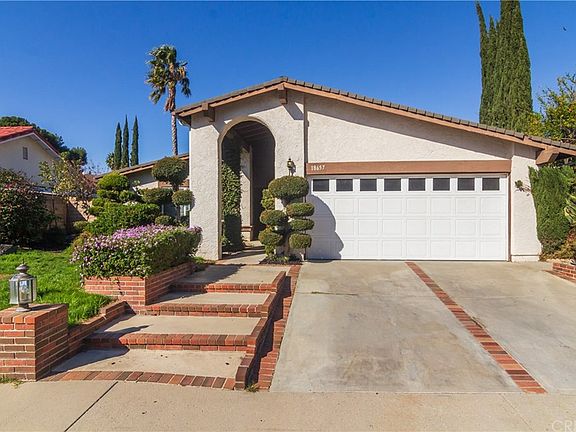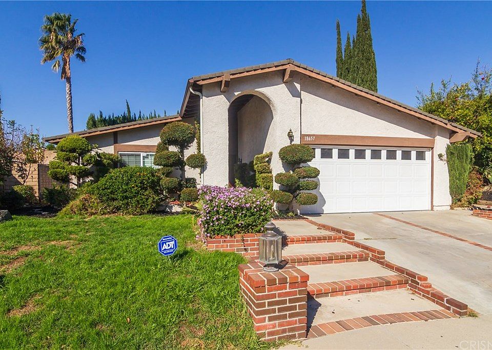 Located North of Rinaldi in Porter Ranch within the highly desirable Granada Hills high school district, this 3 bed, 2 bath home boast just over 1,400 sf of living space on a sprawling 8,016 sf lot. Double door entry opens to the formal living and dining room. Bright kitchen with breakfast bar opens up to the family room boasting high ceilings, fireplace and dual pane sliding glass doors that open to the private yard with covered patio and ample lawn. The home boasts 3 bedrooms, 2 of which share a full bathroom, plus a master with en-suite ¾ bath with glass-enclosed shower with built-in bench. Both bathrooms have been remodeled. 2-car attached garage features built-in storage space and laundry area with sink. The home features new plantation shutters, new dual-pane windows and dual-pane sliding glass doors. The backyard showcases a large, covered patio, green lawn and landscaped hillside with mature trees and lush hedges. Conveniently located near The Vineyard, outdoor recreation, freeway access, and just minutes from shopping and restaurants.