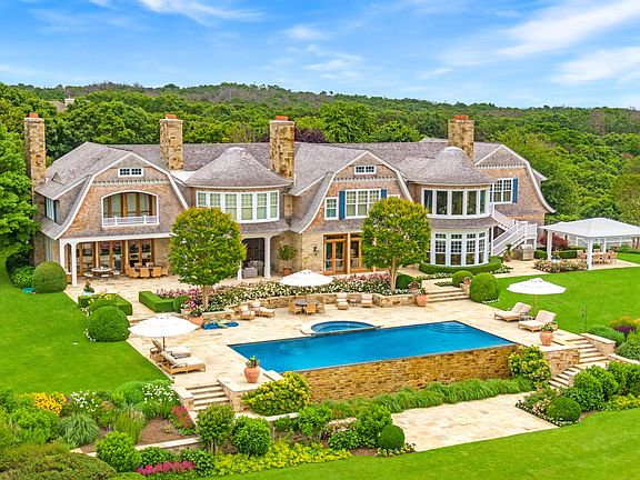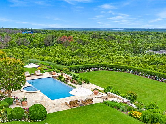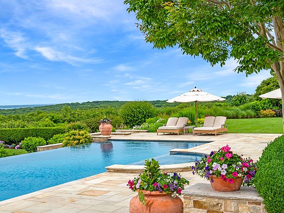 Breathtaking panoramic ground floor views from every room and custom built like no other. One of the most renowned custom builders' own home located at the highest point in Water Mill with 360 degree panoramic sunset views. Built to highest standards and specifications totally different than anything else in the Hamptons. Some amenities include exterior of stone and wood, covered stone porches with mahogany ceilings, antique alder wood great room with custom antique coffering, indoor/outdoor loggia on second floor with fireplace air-conditioning, heat and radiant heat floors, paneled elevator and all custom Michael Reilly designed mahogany French doors throughout, generator that will run entire house if needed, negative edge pool,and Jacuzzi with 6' stone waterfall, incredible gardens by Edmund Hollander Design and interiors by Michael Christiano Design,. A unique opportunity. Houses and properties like this rarely come on the market. Includes adjacent separate building lot with room for large house, pool and tennis court. Property has 5 gated and private acres, but could also include a single and separate adjoining 2.5 acre building lot, making it 7.5 total acres for $16,500,000. Perfect as a compound, nicer than most 5 star resorts!
