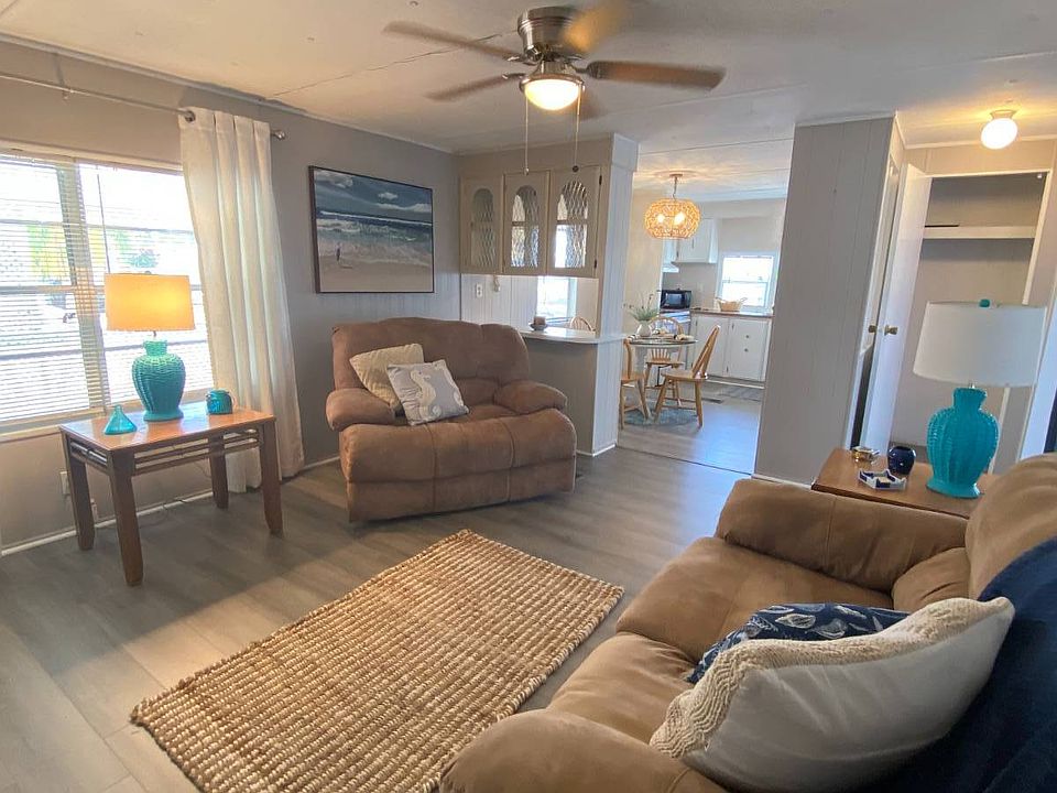 Open concept 2 bedroom and 1.5 bathrooms (Half bath is plumbed for adding a shower), laminate floors in living room & kitchen. Partially furnished, with plenty of storage in kitchen including a pantry & built-in credenza, two hall closets, linen closet, raised Florida room (10x20) with new indoor/outdoor carpet, 12x22 covered patio, 12x10 storage shed/work room and a 12x31 carport. $716 per Month Lot Rent Includes: Spectrum Select TV Package with 2 Set Top Boxes, Internet at 400 mbps, Water/Sewer, and Garbage pickup twice weekly. A Land Lease Manufactured Home 55+ Community (239 Homes) Located On The Scenic Little Manatee River with Entrance to Tampa Bay and the Gulf of Mexico. 30 Minutes South of Tampa off US 41. It is rural but it is minutes from shopping, beaches, and medical facilities. Come enjoy our quiet, active, and owner-occupied community (renting homes is not allowed). Our community has many amenities, including, but not limited to our beautiful Heated Pool, Shuffleboard Courts, Horseshoe Pits, Fire Ring, Bocce Ball, Pickle Ball, Tiki Hut, Clubhouse with Screen Room, Commercial Kitchen, Stage, Recreation Hall, Laundry, Memorial Bridge, 3 Ponds, Private Fishing Pier, Boat Ramp, Fish Cleaning Station, and 30 Boat Slips. Pet Friendly with Off-Leash Dog Park. Small Dogs and/or Cats Maximum 25 Pounds and 16" at Shoulder at adulthood-Limit of 2 Pets. Secured Storage, Unsecured Storage & Boat Slips are Available for Residents to Rent. All prospective buyers must come to the office prior to purchasing a home for a background and credit check. Contact Chulavista Landings Office for more information.