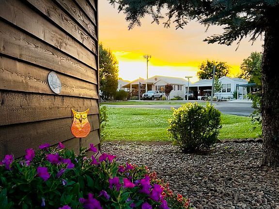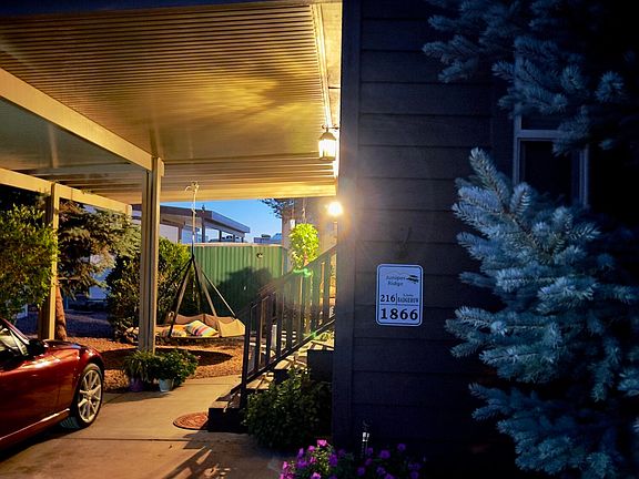 Come check this corner lot property out! This park model has beautiful cabin/wood features inside and out. Nice metal roof, shade canopies over the windows, and carport for your car and golf cart. Vaulted ceiling for an open feel and clerestory windows that allow for tons of natural light into the space. Loft above, A/C, and matching black appliances. Schedule an appointment today to see all that this property and Juniper Ridge Resort has to offer!