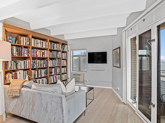 Over 2200 square feet of living space in this tree top 4-bedroom co-op! This one-of-a-kind unit was originally the home of the architect of Sherman Gardens. Boasting three exposures and two balconies, the home is flooded with light. The gracious living room has a woodburning fireplace. Built-in bookcases in the study/library. The updated kitchen has professionally painted metal cabinets, quartz countertops, stainless steel appliances, and a custom-built walnut breakfast bar, open to the dining area. 4 bedrooms and two renovated bathrooms. The floors were all replaced and recently painted throughout. In the center of the complex are the lovely common gardens and sitting area. Interior common areas are all about to be updated (no special assessment needed for this update). Assessments include taxes, heat, electric, water, now removal and lawn/garden maintenance-everything but cable and internet! Well run and maintained co-operative association with substantial reserves. Shared laundry room in the basement. Parking $50 for uncovered, $70 for covered, there may be a short wait. Cats OK! 100% owner occupied; no rentals allowed. Amazing location-steps from downtown Evanston trains, shopping, restaurants and entertainment, Northwestern University and Lake Michigan.