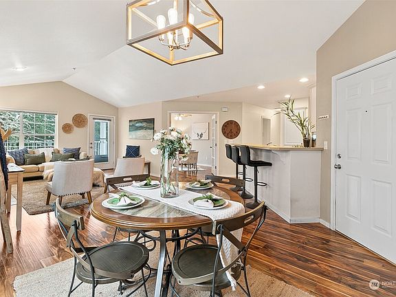 Beautiful & serene upper-level condo located in gorgeous Savannah Oaks! This 3 bed, 2 bath end unit has a lovely covered balcony that overlooks the beautiful forested greenbelt & walking trails, the perfect view for your morning coffee! Inside find a bright open concept living space w/vaulted ceilings, laminate flooring throughout, spacious kitchen w/eating bar & SS appliances, cozy fireplace, updated bathrooms w/quartz countertops, & don’t miss the ATTATCHED oversized 1 car garage w/internal private access stairs! Minutes to JBLM & I-5, miles of trails, walking distance to farmers market, parks, schools, and shopping.