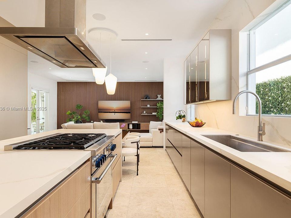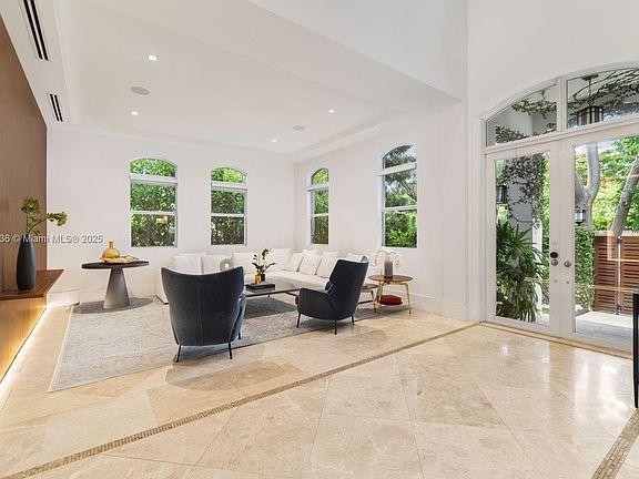 Impeccably renovated 2008 Mediterranean residence in North Coconut Grove with 5,234 SF total, and 4,455 SF of living. Elegant interiors feature double-height ceilings, a gourmet kitchen with custom Italian cabinetry and Sub-Zero, Thermador, and Miele appliances. The spacious primary suite offers dual Italian finished walk-in closets, a spa bath, and a balcony. Renovations include Italian paneling, updated baths/closets, Lutron lighting, sound system, Lennox ACs, water softener, Tesla EV charger, solar panels with backup battery, and a fully redone heated pool/deck. Impact windows/doors, gated entry, control four system, and 2-car garage. Entry via Crystal Ct. Minutes to Grove Village, parks, marinas, schools, MIA & beaches.