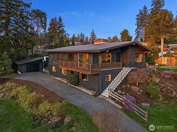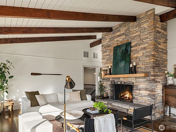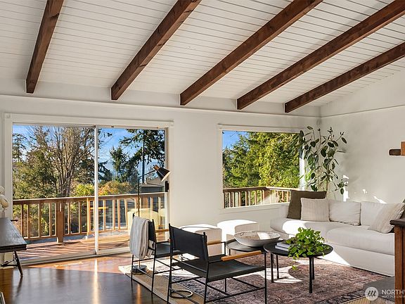 Discover beautiful Puget Sound & Mountain views from this stunning mid-century home on a generous 1/2-acre lot in the Riviera Section of Normandy Park w/ Lot A rights to the Cove Beach Park, clubhouse & tennis courts. Soaring ceilings, striking exposed beams, & rich espresso-stained hardwoods set the stage for an unforgettable living experience. Sun-drenched spaces w/ oversized windows perfectly frame the breathtaking views from both floors. The chef’s kitchen is a culinary dream & seamlessly connects both indoor & outdoor living. Downstairs you'll love the giant rec room with wet bar (future MIL?), additional beds, bath & generous sized laundry. Huge lot offers endless possibilities, big circular drive, det. garage, RV/boat parking & more!