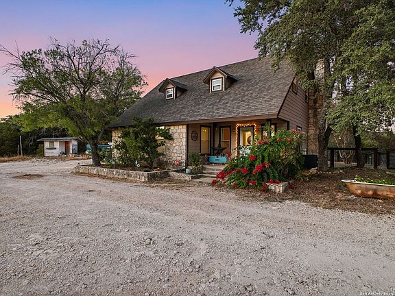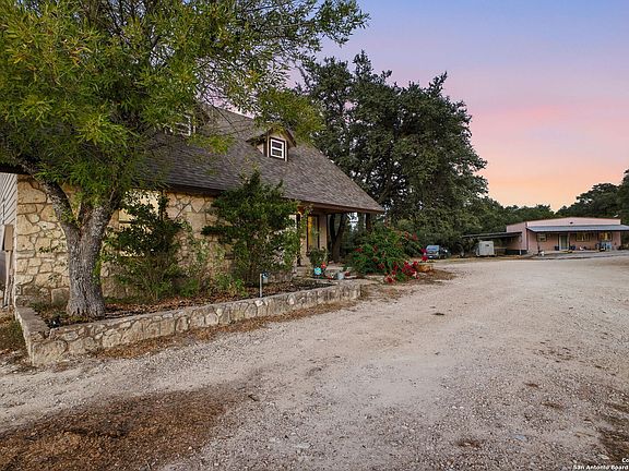 This unique property situated only 5 miles from Helotes, is part rural but conveniently located on a coveted hillside with 360 view of countryside plus distant city lights and golf course below, other homes have countryside views on partial flat and sloping hill country. Make this your own paradise as it is secluded but not isolated; Potential event and/or income producing investment; Musicians can turn this property into a recording studio with separate living quarters, or this can by your own great family compound with 3 separate houses on this a 5 acre tract; This is a rare find, land has been in the family since the 1870s; 1st house is approx 1620Sq ft described in this MLS; 2nd house is 900Sq ft 2 bd 1bth barndominium, 3rd house on top of hill is 2100Sq ft. 4 bd 3 bths with large kitchen, axel sets on slab. Laminate flooring, carpeting only in bedrooms, bardominium has stained concrete floors. All are open living plans. A 6th acre could be available with separate negotiations with adjoining party. Chandelier in 2100sqft Manufactured home dining does not convey