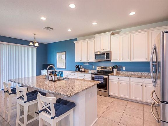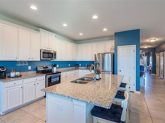 WOW $5,000 PRICE REDUCTION TO SELL QUICKLY! Welcome Home to your Barcello, a 4 BEDROOM 3 BATHROOM 3 CAR-GARAGE SMART SERIES home in the peacefully private Talavera Community on a 65' wide REAR PRIVACY FENCE HOMESITE. Enter through the grand Foyer to a wonderfully designed Open-Floor Plan to include a Dining, Family, Kitchen, and Cafe layout. The Kitchen is adorned with 42" upper cabinets detailed with CROWN MOLDING, GRANITE COUNTERTOP ISLAND, and STAINLESS-STEEL APPLIANCES, including a gorgeous 4 -Door French Door Refrigerator. This SPLIT BEDROOM home provides privacy from the Master Suite with the two Bedrooms and Bathroom upfront and 4th Bedroom and another Full Bath just off the Family Room. The Master Suite is nestled in the rear of the home, luxuriously detailed with a TRAY CEILING and generous WALK-IN-CLOSET with ORGANIZATION SYSTEM. The impressive Master Bathroom with WALK-IN SHOWER and DOUBLE SINK complete the Owners Retreat. Entertain on the 26X10 covered LANAI with DOUBLE FANS and TV MOUNT with only a short walk to the COMMUNITY POOL, TENNIS COURT, BASKETBALL COURT, and PLAYGROUND! OTHER UPGRADES INCLUDE: FLOOR OUTLET in Family Room, APPLE HOMEKIT ENABLED, WATER SOFTNER ROUGH-IN, LAUNDRY TUB, IN-WALL PEST SYSTEM, DOUBLE-PANED WINDOWS, HIGH CEILINGS, and SO MUCH MORE! Welcome home!