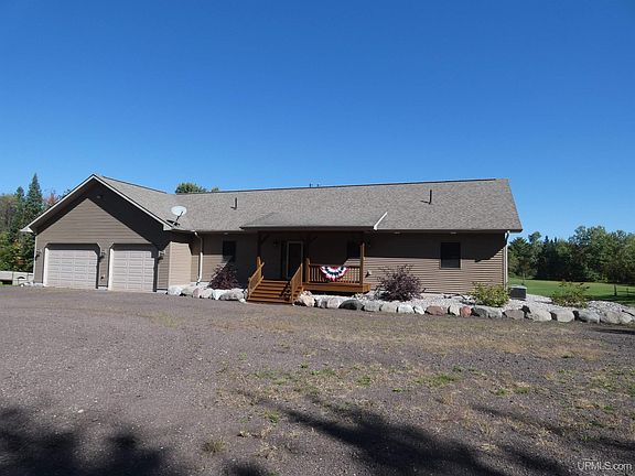 Custom built ranch style home located on the end of Tuski Road just ½, mile East of Bergland. This beautiful home has a modern open floor plan allowing for great entertainment. The kitchen has custom cupboards, granite counter tops, large island, T&G Maple hardwood flooring, cathedral ceilings with the living room boasting a large stone wood burning fireplace, patio doors, and a wall of windows overlooking a 16’ x 20’ deck and manicured backyard. The lower level has two bedrooms, full bath, utility room, arts and crafts room and a large family room. Attached is a 28’ x 36’ garage with an electric versa lift for attic storage. In the back yard is a wood burning boiler system to compliment the LP forced air and air conditioning system. The home is complimented by 80 heavily wooded acres, large pond, food plot, 3 active hunting blinds, and surrounded by National Forest on all sides. Lake Gogebic is only 1 mile away, and the snowmobile trail is ½ mile from the doorstep. If privacy and custom workmanship are what you are accustomed to, this would be a great fit. Call for more information or to schedule a showing today. TAXABLE: $132,686 SEV: $160,210