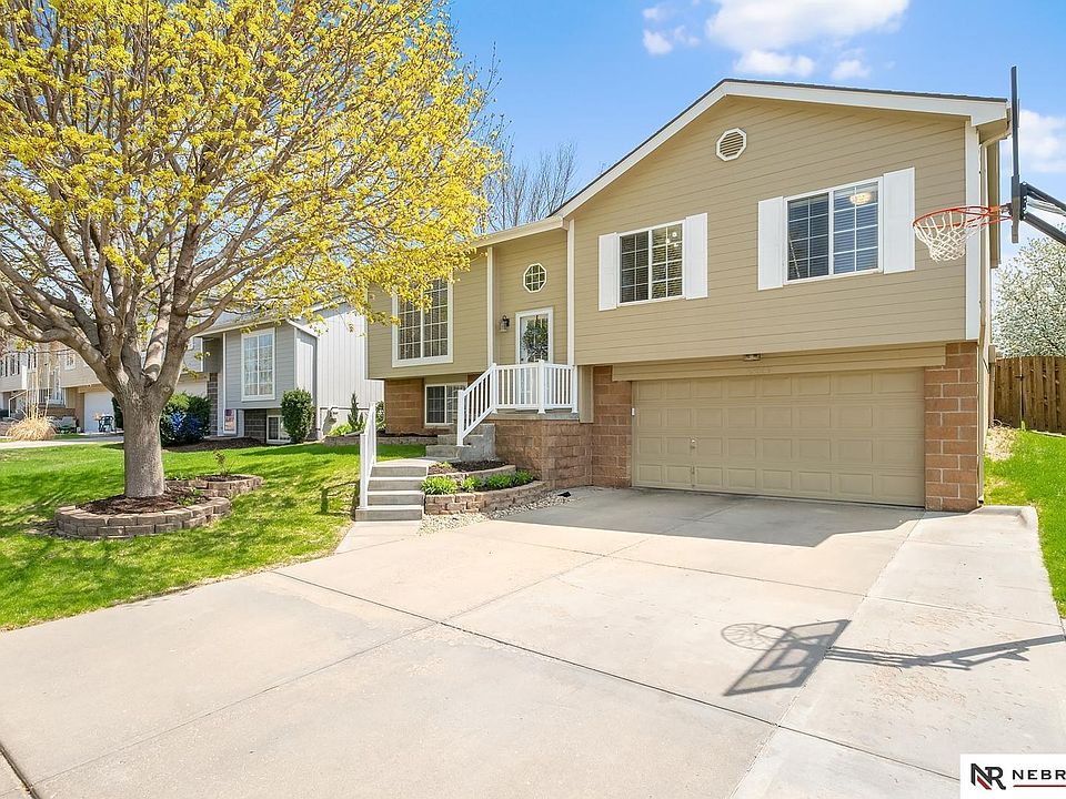 Well maintained split entry home located in sought-after Coyote Run; within the Millard school district. The vaulted ceilings in the living/dining/kitchen makes for a spacious and open feel. All three bedrooms are on the main floor along with a full hall bath. The primary bedroom offers a private 3/4 bath and double sink vanity. The basement is perfect for a family/game room or home office. Outside the home you'll appreciate the beautiful curb-appeal and a fully fenced in backyard. Also just blocks away you'll enjoy the Coyote Run park and Splash Pad. This home is conveniently located near schools, restaurants and shopping. Schedule a private tour today to appreciate the value this home has to offer. AMA.