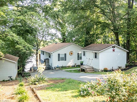 Move in ready home on High Rock Lake! Lots of updates: new roof 2022, new pier 2022, new water heater 2023, finished basement 2023, all new lvp flooring throughout home, new lighting fixtures in all bedrooms, kitchen, dining, and living room. New quartz countertops in kitchen with tile backsplash. New French doors in basement, all new ceiling tiles and recess lightening in basement, new drainage system and back yard retaining walls. Washer, dryer, refrigerator in kitchen, security system, ring door bell camera and two security cameras convey. Hot tub stays! The shed closest to house stays, put the one at the top of driveway does not. Septic tank pumped in October 2024. Seller is a Real Estate Licensee in North Carolina