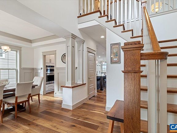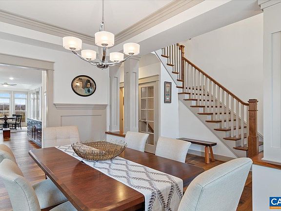 Enjoy beautiful sunsets and mountain views from all the living spaces. This home looks over the community pond out toward Darden Towe Park and the Blue Ridge Mtns thru a vaulted wall of windows in the Great Room. There is remarkable privacy here --there are no homes behind this one & all the homes are built to avoid any neighbor looking into the windows of another. A custom extension to the back side of this home puts the sun deck & screened porch into a protected nook w/no view of neighbors. Beautiful custom kitchen has a large island w/induction cooktop, custom cabinetry with pull out pantry panels that increase storage. Living area has a 2 sided glass fireplace that you can enjoy inside and out on the deck. Main level OBR suite has direct access to the sun deck, custom walk-in closet, bath w/heated floors, custom steam shower, & water closet. With laundry located in the mud room/butler's pantry, one level living is possible here. Lower level has huge living space w/modern gas fireplace, sunroom, Kitchenette (could be full kitchen), 5th bedroom, a full bath, & a workshop. Full array of solar panels on roof, whole house generator; 2 car garage has 50amp outlet for an electric car charging port. Just 10 mins to the downtown mall.