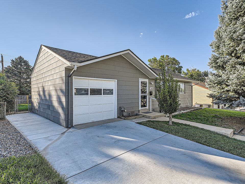 Ranch Home with 2 bedrooms, Study, 1 full bath, 1 car attached garage. Has newer bathroom fixtures. Washer/dryer hookups. Remodeled Kitchen features new stainless refrigerator, microwave, stove/oven, dishwasher. Evaporative Cooling. Fenced yard, Shed, has automatic sprinkler system, pergola and shed. Garage has opener with remote. Owner pays for water & sewer. Denver trash service includes medium trashcan, and recycling. Tenant responsible for yard maintenance; including mowing the grass or paying to have grass mowed, sniw removal on sidewalks, Owner pays for yearly sprinkler and evaporative cooler start up and shutdown.