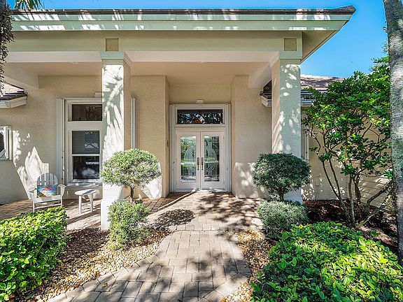Discover refined Florida living in this beautifully maintained 4-bedroom, 4-bath CBS home nestled on a large lot within the peaceful, gated community of River Ridge. This light-filled residence offers over 2,800 square feet of living area (4,500 total) and combines elegant architectural details with modern comforts & timeless style.Step through double glass doors into an inviting open layout featuring volume ceilings, crown molding, and neutral engineered wood floors that flow seamlessly throughout the home. The split floor plan provides both privacy and functionality, while recessed lighting, sliding glass doors, and plantation shutters enhance the home's bright and airy ambiance. The renovated kitchen is a chef's delight, featuring white shaker cabinetry, quartz counters... and backsplash, stainless steel appliances, and plenty of counter space for cooking tools and prep. A formal dining room offers an ideal setting for gatherings and entertaining. The spacious primary suite is a relaxing retreat with a coffered tray ceiling, sliding glass doors opening to the patio and pool area, walk in closets and a luxurious primary bath with dual sinks, jacuzzi tub, separate shower, and a large frameless corner window that fills the space with natural light. The large laundry room offers storage cabinetry, a laundry sink, and a charming stained-glass window. Outside, enjoy Florida living at its best on the covered patios, overlooking the large, private heated swimming pool and lushly landscaped, backyard with banana and mango trees. This home is perfect for relaxing or entertaining. The home also features an invisible fence for dogs and a newer roof, A/C & hot water heater. Residents of River Ridge enjoy low HOA fees, a manned guard gate, clubhouse, playground, and tennis courts. Located just minutes from Jupiter and Tequesta's beautiful beaches and waterways, upscale dining, boutique shopping, world-class golf, marinas, the Jupiter Inlet, and Roger Dean Stadium, this home offers the perfect blend of tranquility, convenience, and luxury-and only a short drive to Palm Beach International Airport.