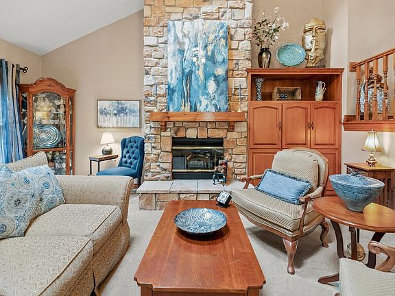 Prepare to fall in love with this beautifully updated St. Andrews Square condo offering over 3,000 sq ft of living space! The dramatic 2-story living room with vaulted ceilings, skylights, hardwood floors and a 2-way fireplace creates the perfect first impression. The main floor features a primary suite, convenient laundry and a private deck overlooking peaceful, tree-lined views. Upstairs, enjoy a open loft, two spacious bedrooms and a full bathroom. The brand-new finished lower level with a dry bar and half bath is ideal for movie nights or entertaining. A meticulously maintained home in a prime Brookfield location. Just steps from Towne Centre shops, cafes, and restaurants!